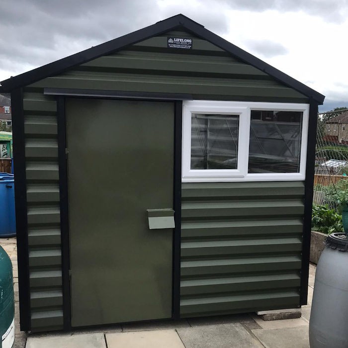 The Lifelong Apex steel shed is a stylish, robust and secure steel apex shed which is made to last!  This secure steel shed is constructed with PVC coated galvanised steel cladding fitted to a rigid 40mm x 40mm box steel frame. Available in a wide range of sizes from 6ft x 7ft up to 12ft x 23ft 3in.